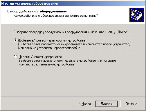 (Add/Remove Hardware Wizard). Нажмите в этом окне кнопку